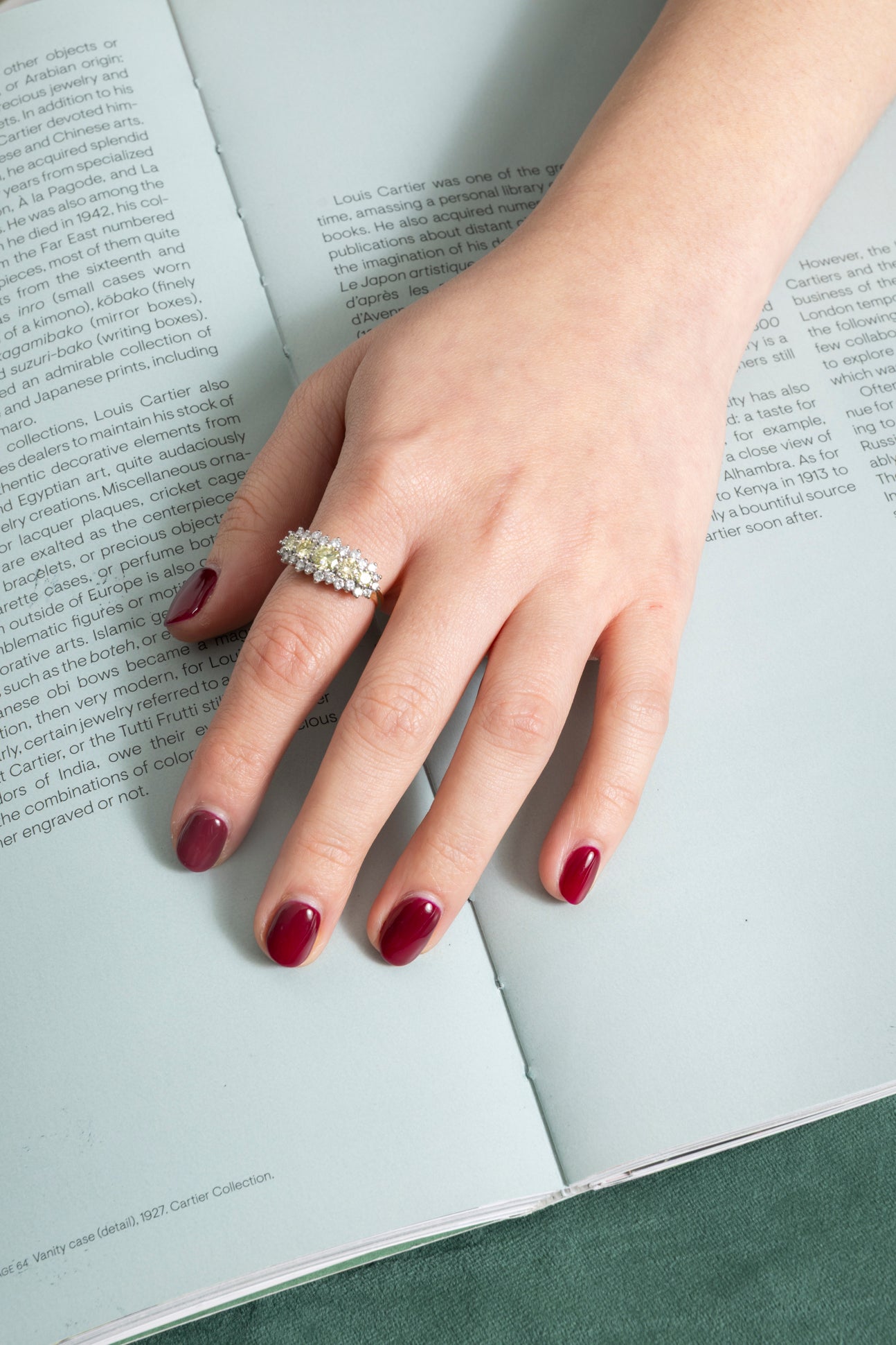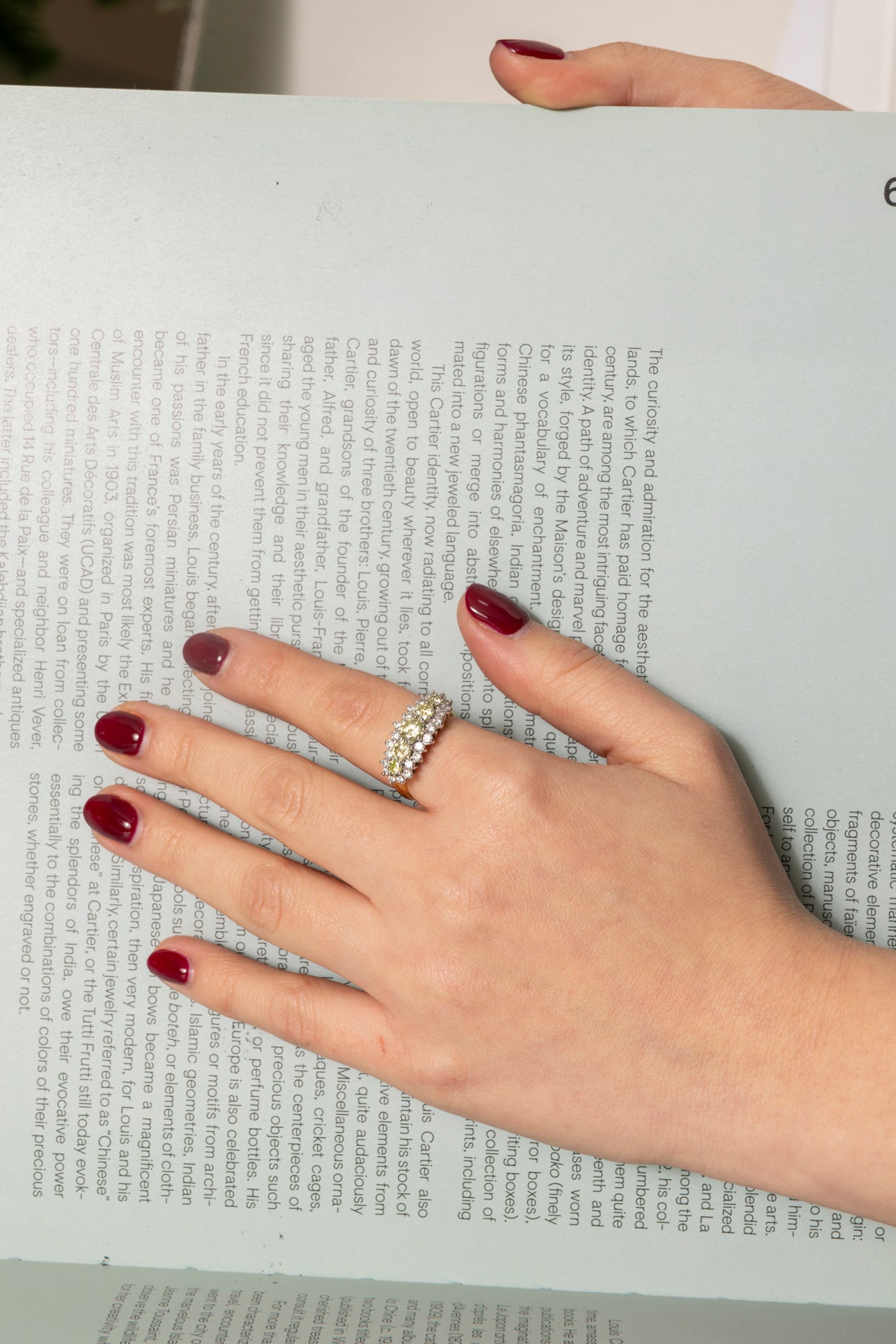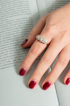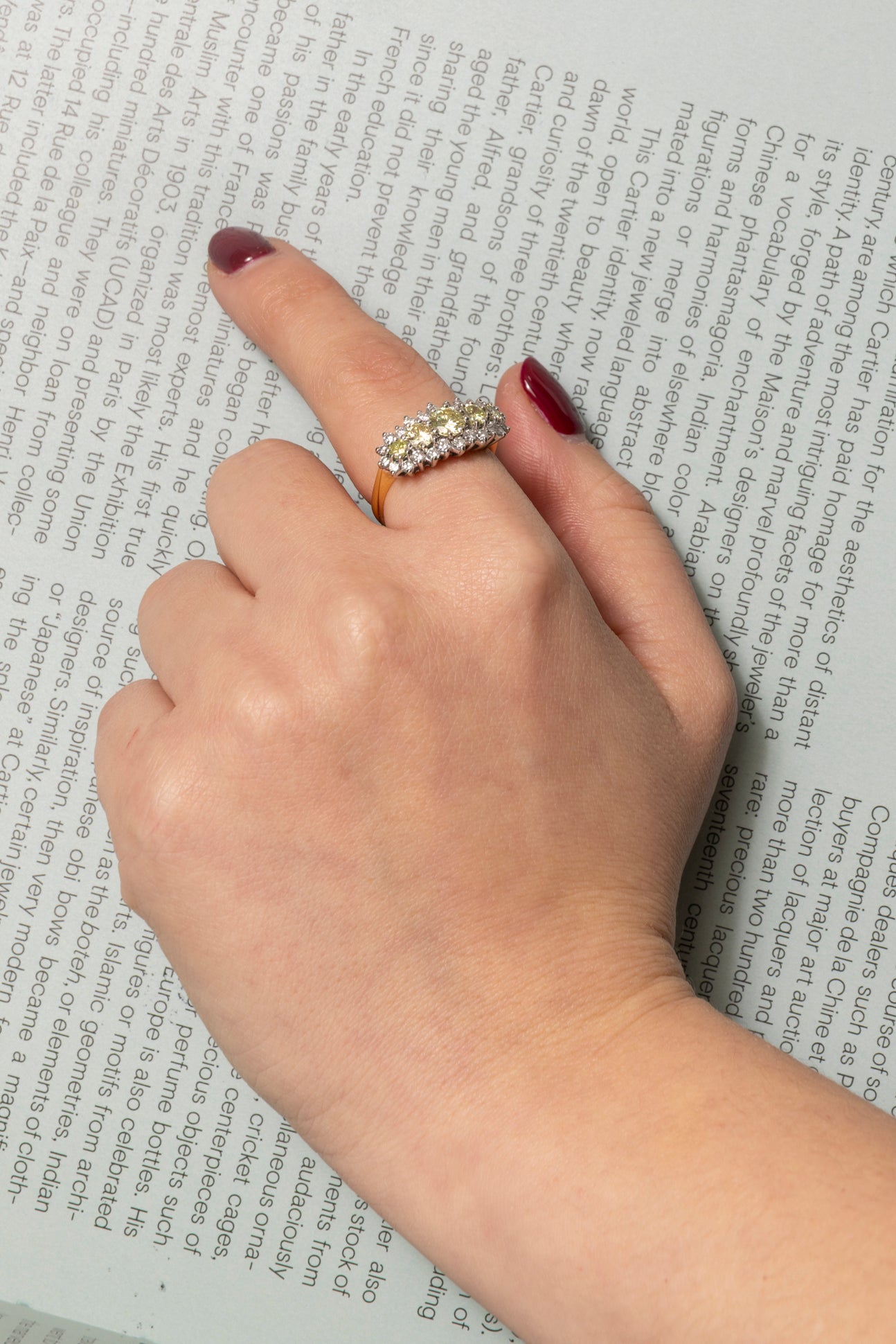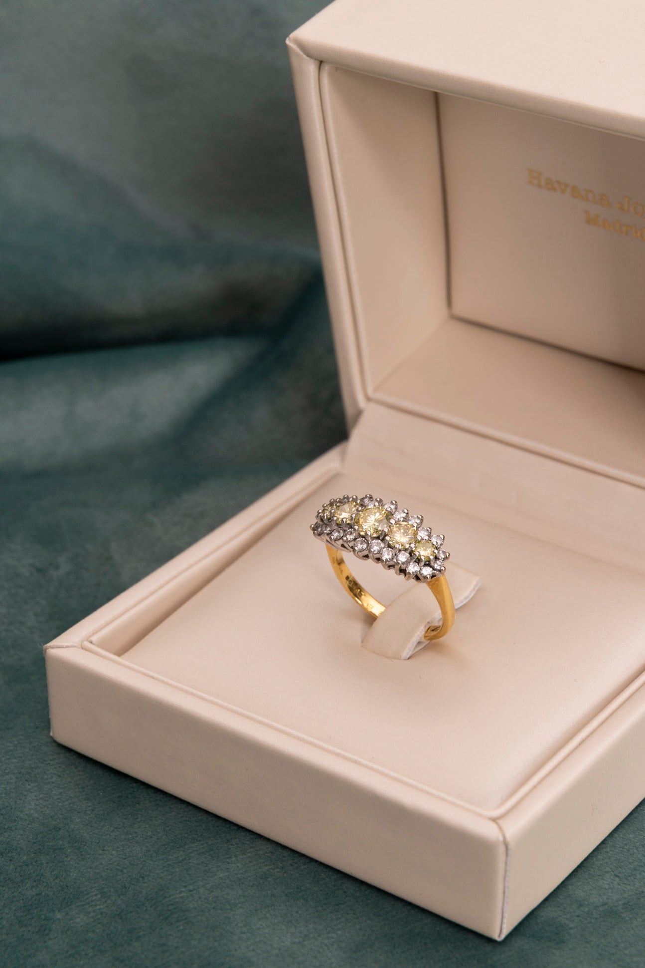 Vintage style band ring in 18k yellow and white gold with natural diamonds, 5 Natural Diamonds "fancy light yellow...