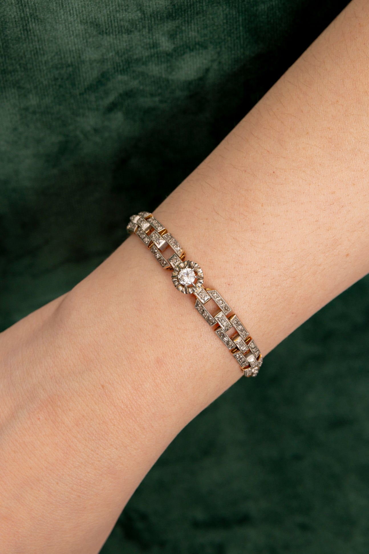 Pulsera antigua estilo Art-Déco de Diamantes en Oro Amarillo 18k y Platino,
