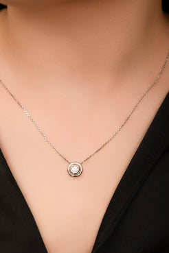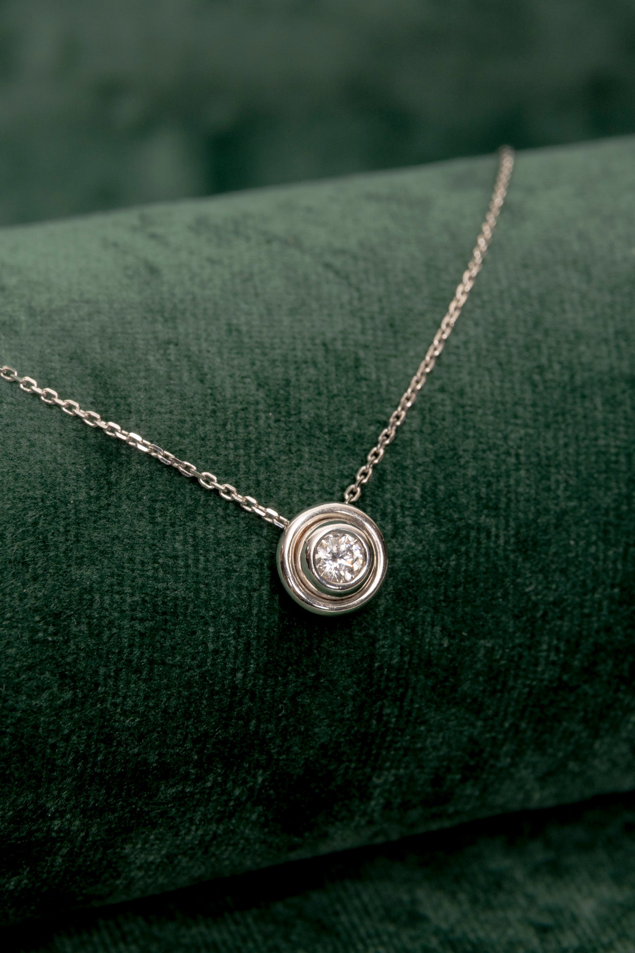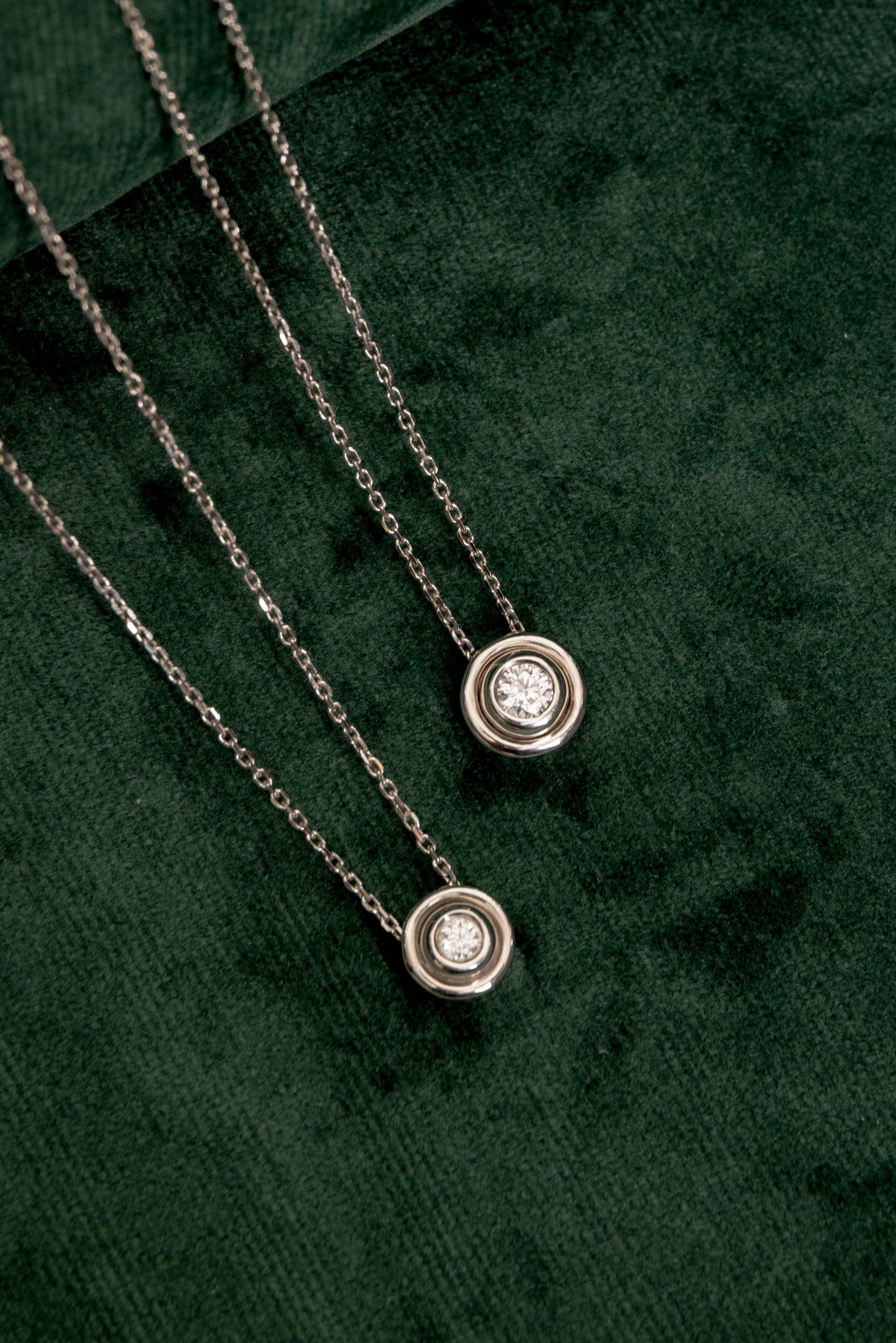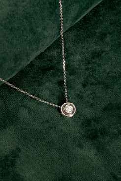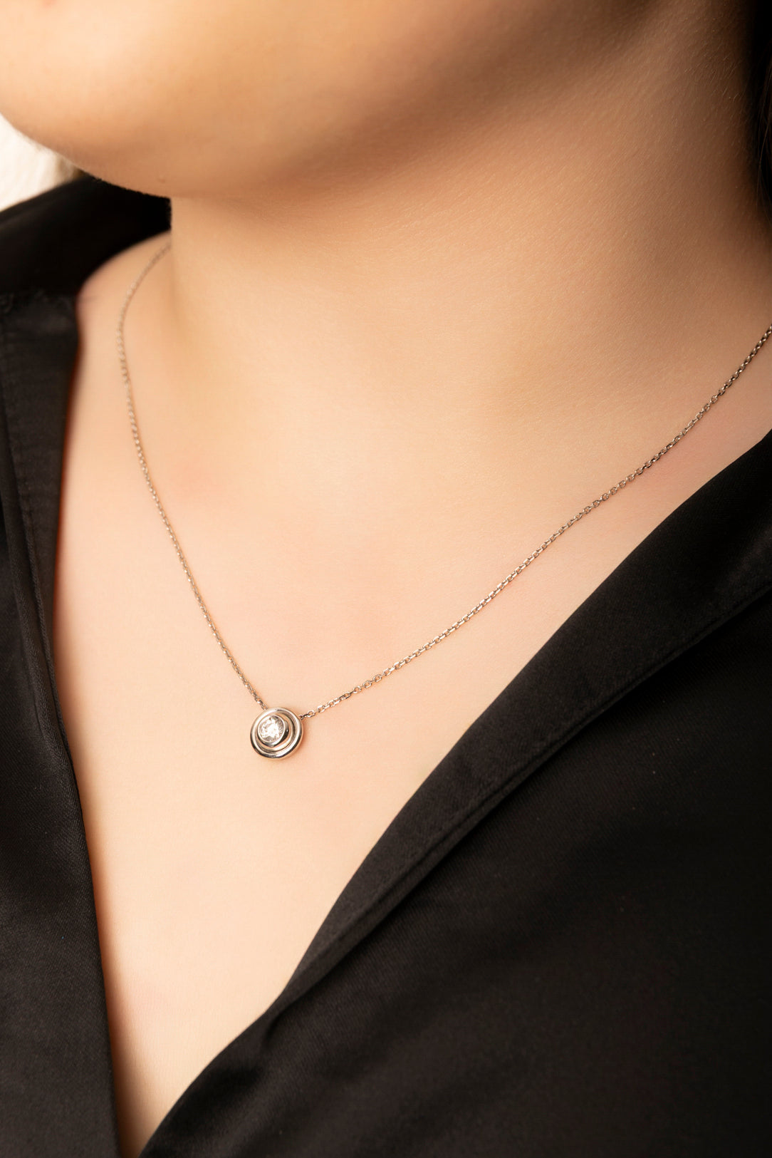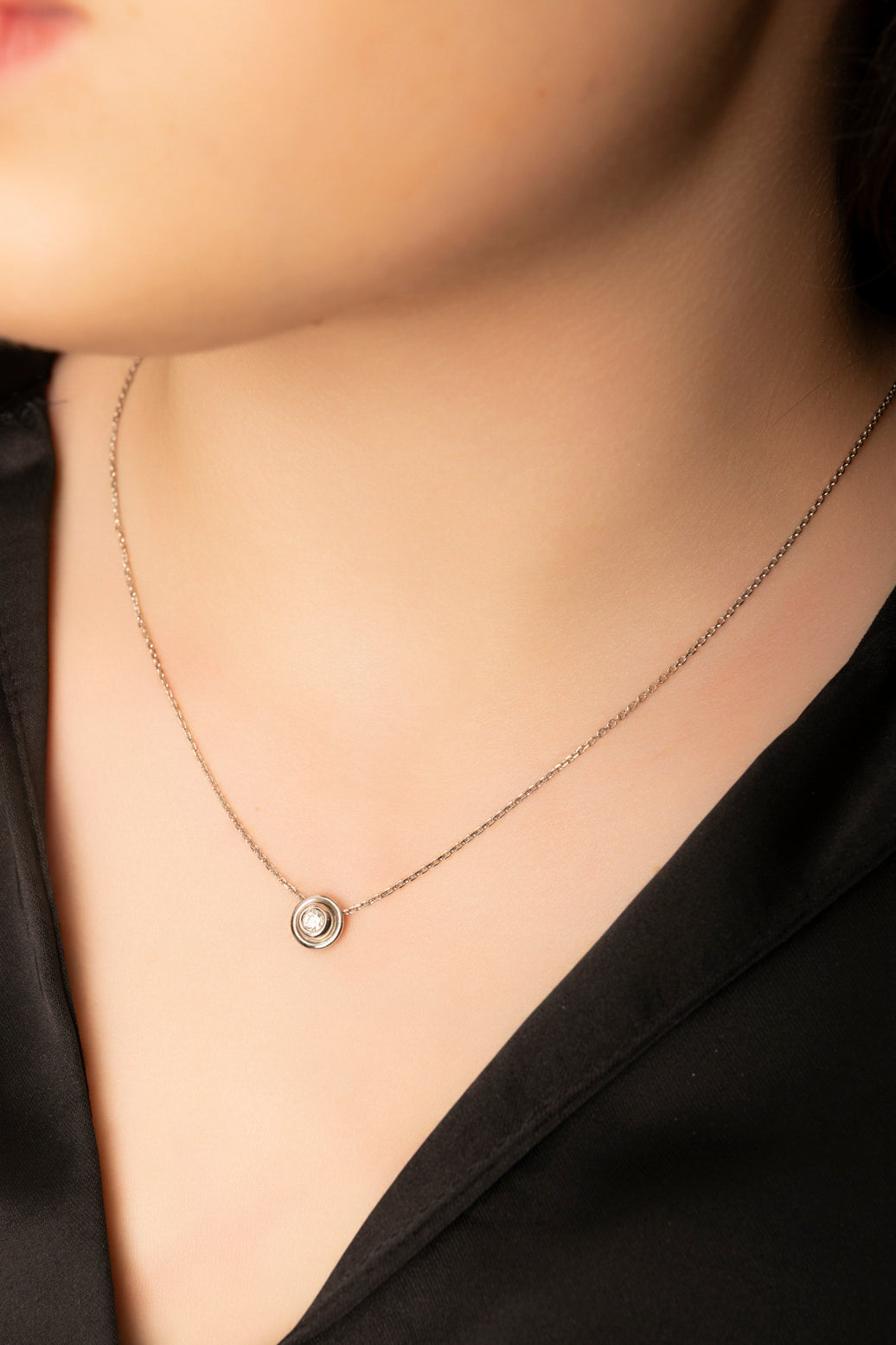 Colgante estilo Chatón de Diamante en Oro Blanco acompañado de cadena de Oro Blanco 18k,
