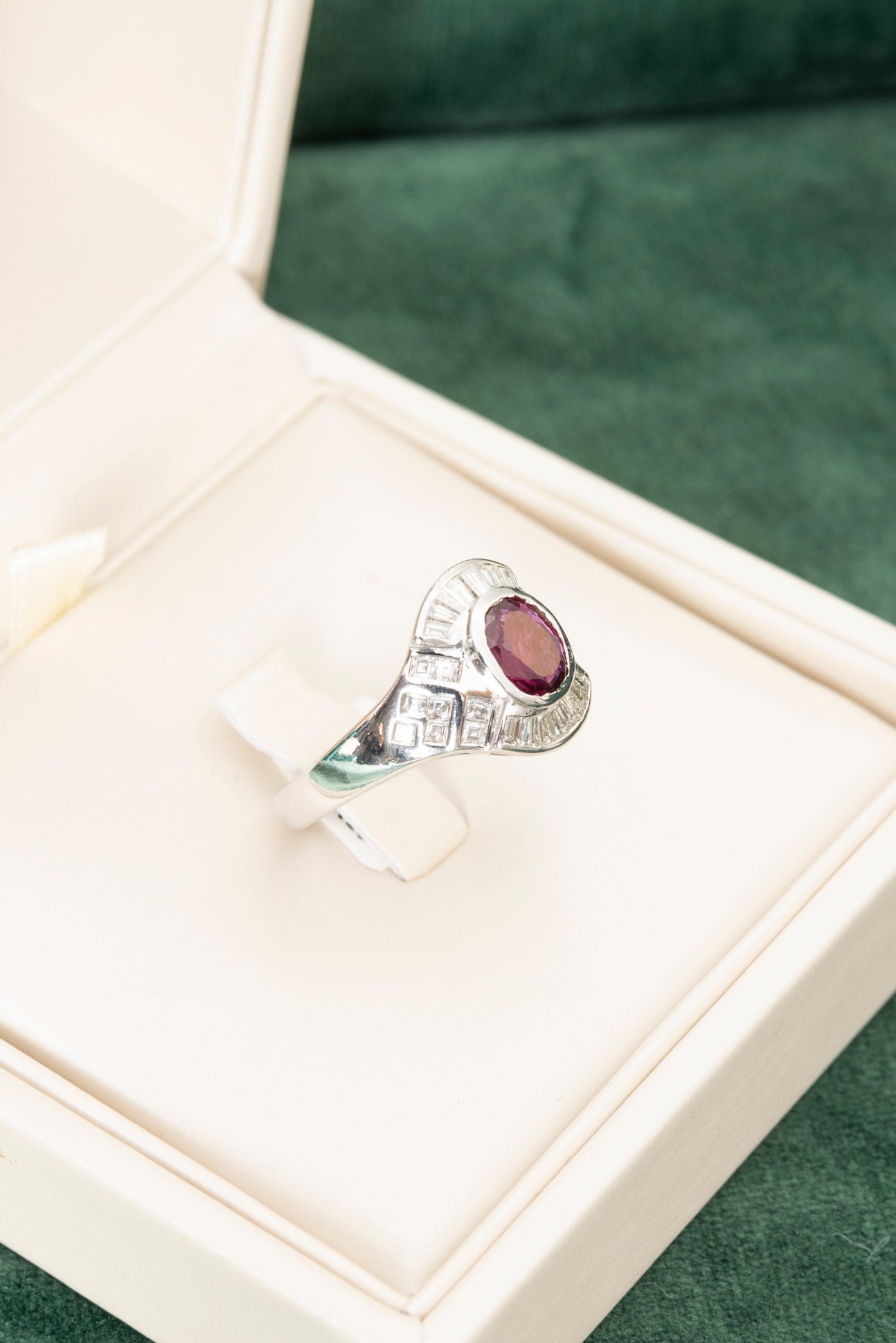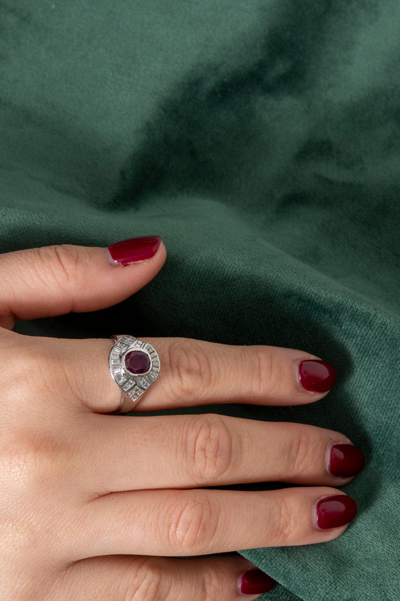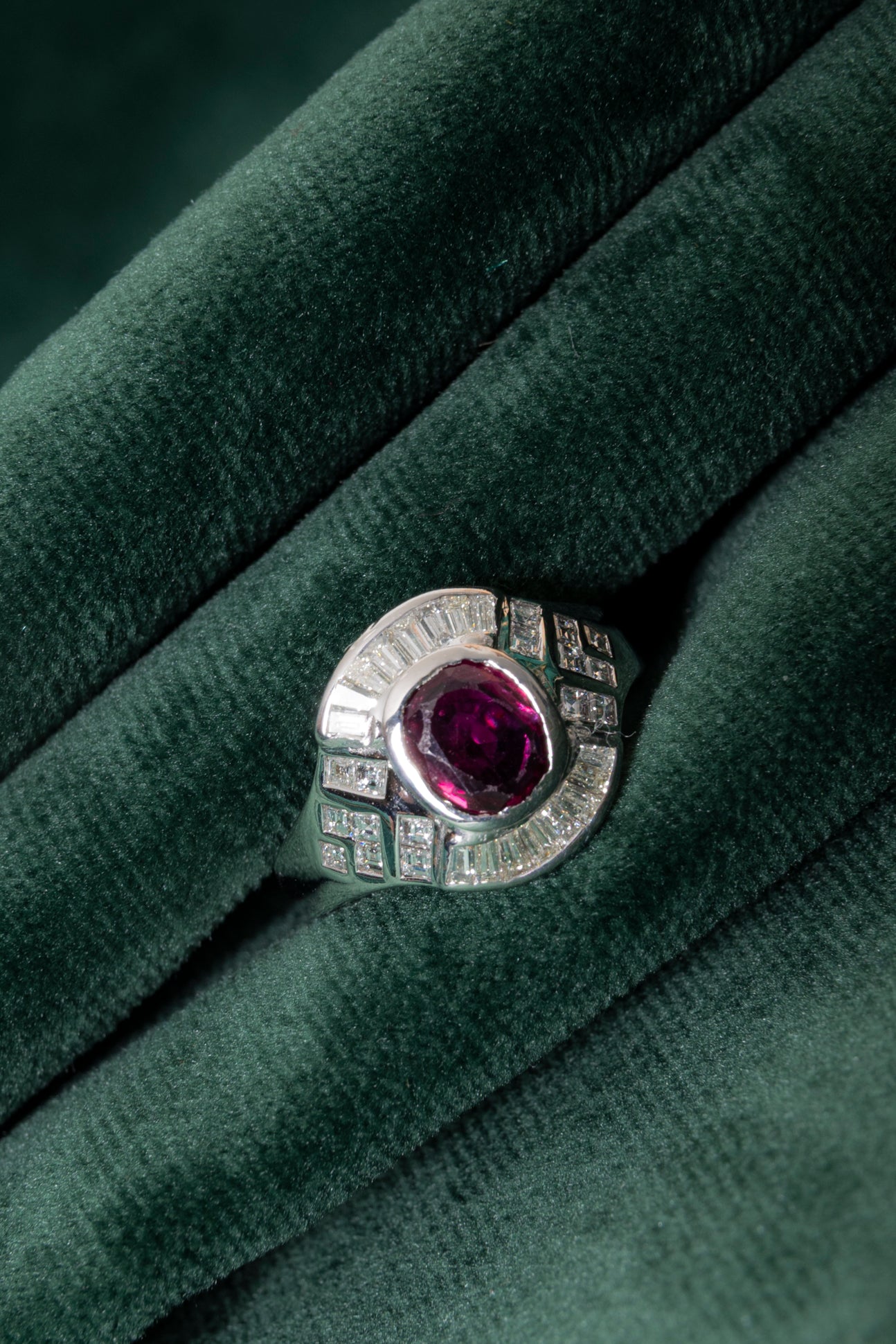 Sortija Vintage estilo Sello de Rubí y Diamantes en Oro Blanco 18k, 1 Rubí Natural con peso estimado de 1.00 quilates...