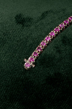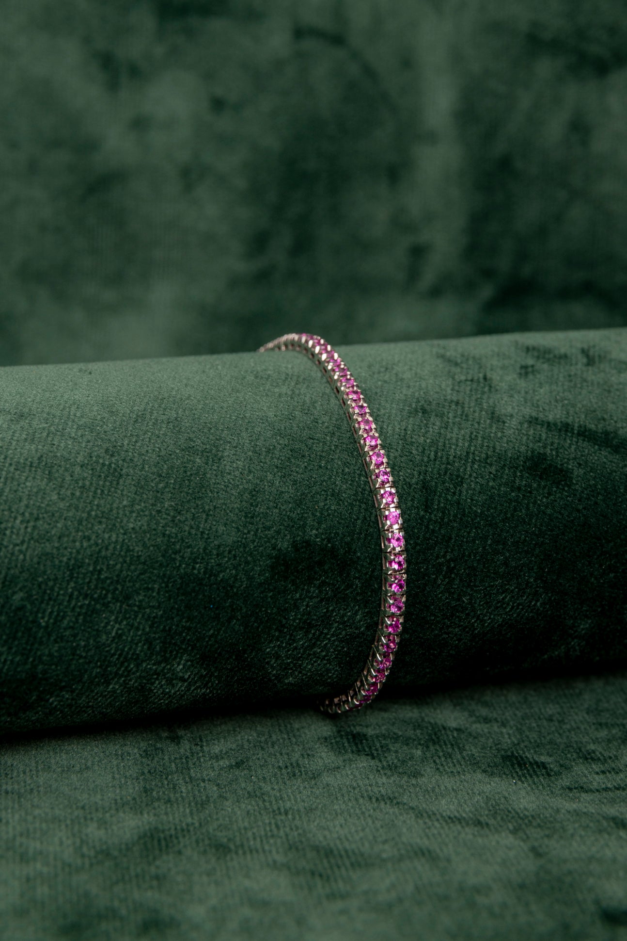 Pulsera Riviere de Zafiros Rosa en Oro Blanco 18k,