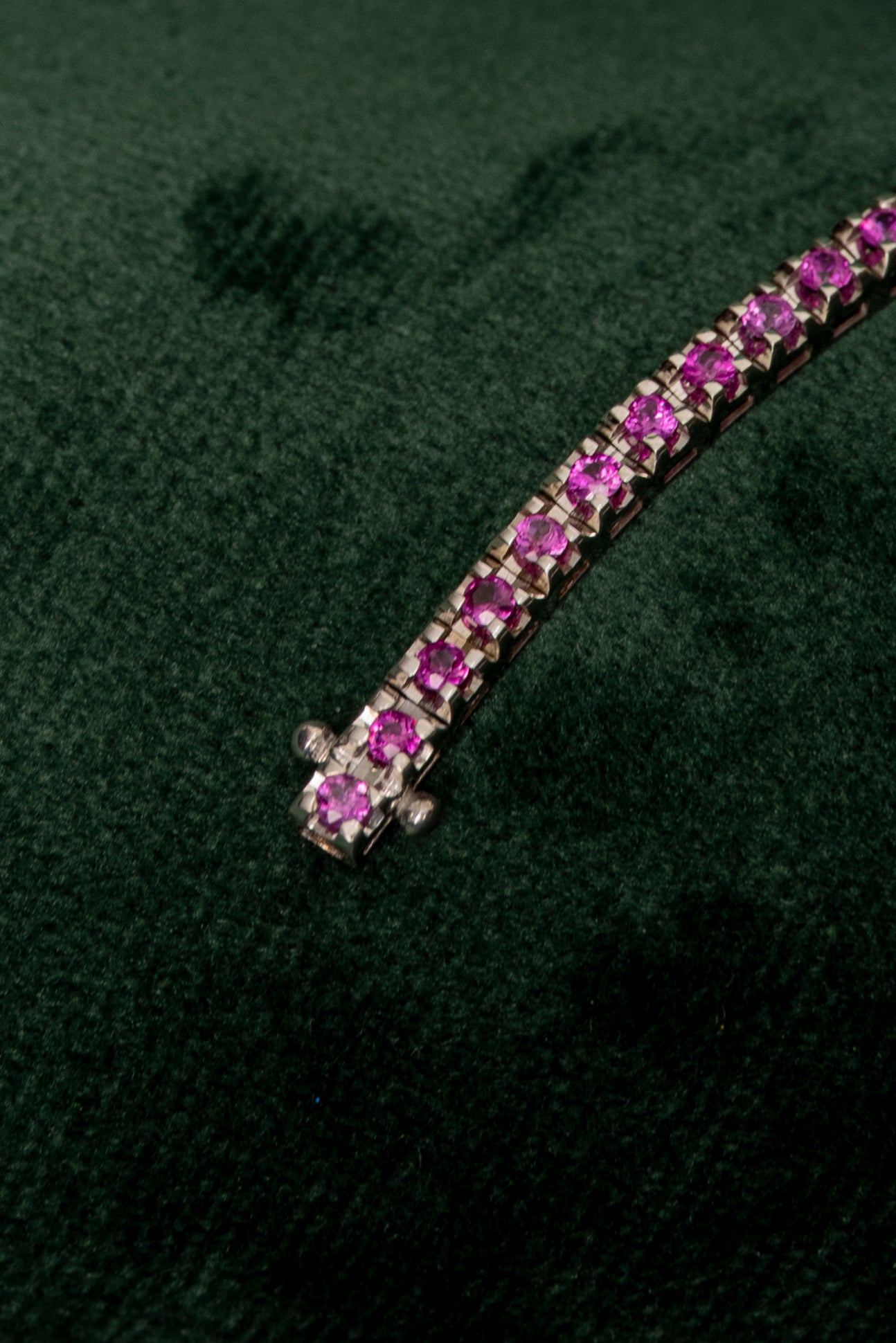 Pulsera Riviere de Zafiros Rosa en Oro Blanco 18k, 56 Zafiros Rosa Naturales con peso total estimado de 2.24 quilates...