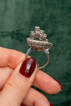 Sortija Cóctel de Diamantes en Oro Blanco 18k,