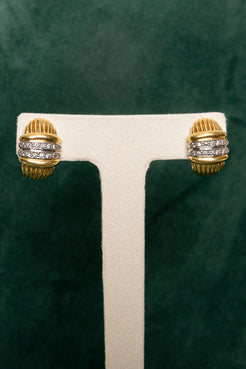 Pendientes Vintage gallonados en Oro Amarillo 18k y detalle central en Oro Blanco 18k y Diamantes.