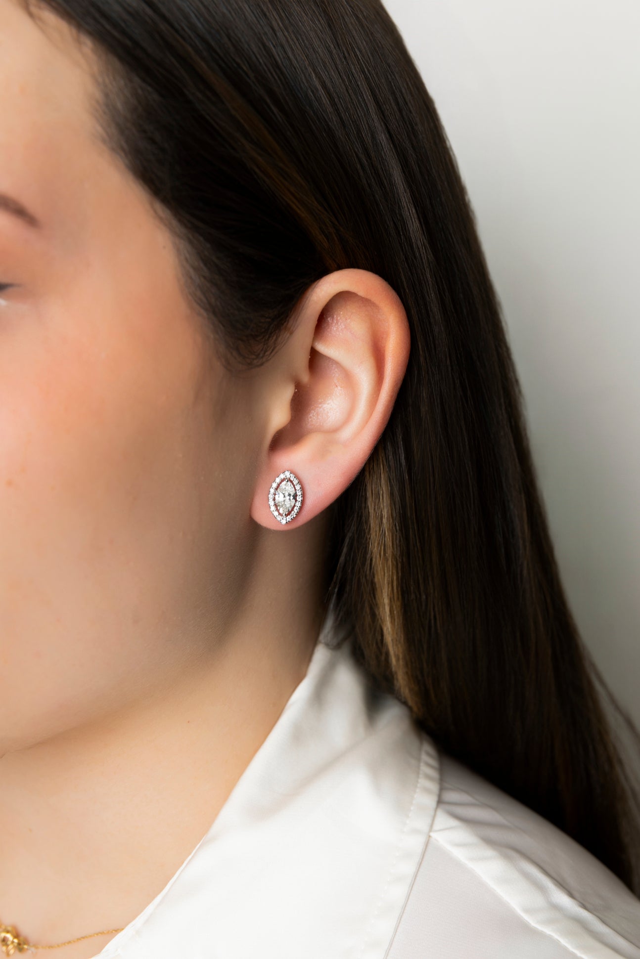 Pendientes de Diamantes en Oro Blanco 18k, 2 Diamantes Naturales talla Marquise con peso total estimado de 1.21 quila...